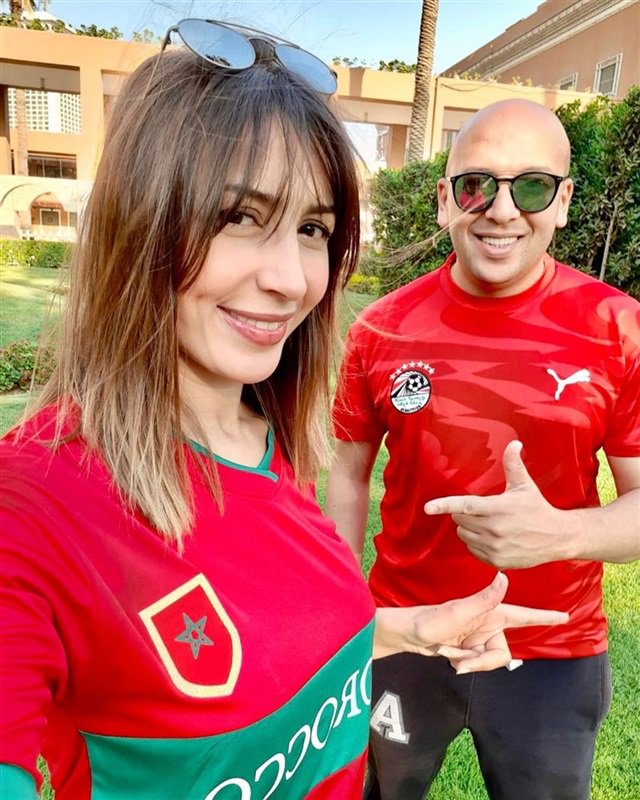 نشرت المطربة المغربية “جنات”، صورة جديدة لها على “إنستغرام”، برفقة زوجها محمد عثمان، حيث ظهرت وهي ترتدي قميص المنتخب الوطني، أما زوجها فارتدى قميص منتخب مصر.