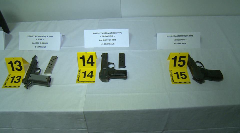 وبخصوص المحجوزات، أبرز أن الأمر يتعلق ب6 مسدسات أوتوماتيكية من عيارات مختلفة (7,65 و9 ملم)، و8 حواسيب التي سيتم تحليلها من طرف مختبر الشرطة العلمية والتقنية، و2 من الأقراص الصلبة للحواسيب، وأجهزة موديم للجيل الثالث ومفاتيح “يوسبي”، و18 هاتفا محمولا، و14 شريحة “جي إس إم”، ومناظير، وآلة تصوير وأقراص “سي دي ” و”دي في دي”.