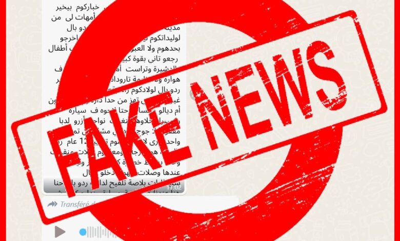 وإذ تنفي ولاية أمن أكادير هذا الخبر الزائف الذي يمس بالإحساس بالأمن لدى المواطنين، فإنها تؤكد في المقابل بأن الأبحاث جارية، تحت إشراف النيابة العامة المختصة، من أجل تحديد الخلفيات الحقيقية وراء ترويج هذه الأخبار الكاذبة، وتوقيف المتورطين فيها، وفقا لذات المصدر.