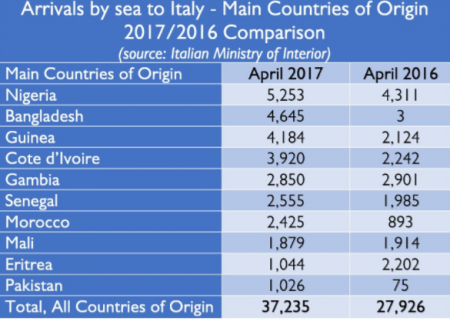 وحسب الأرقام التي نشرتها المنظمة، فإن حرس الحدود البحرية الايطاليين أحصوا خلال الفترة الفاصلة بين فاتح يناير و30 أبريل الماضي وصول 2.425 مهاجرا مغربيا، مقابل 893 خلال سنة 2016.