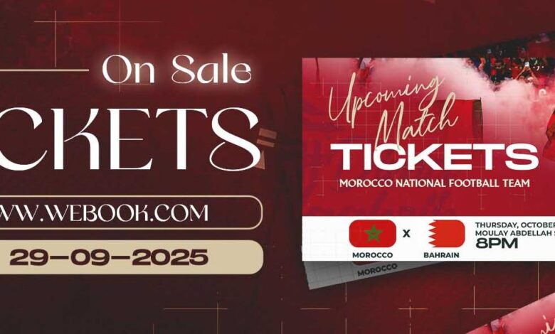 أعلنت اللجنة المنظمة للمباراة التي ستجمع المنتخب الوطني بمنتخب البحرين، التي ستجرى الخميس 9 أكتوبر 2025 على أرضية ملعب الأمير مولاي عبد الله بمدينة الرباط ابتداء من الساعة الثامنة مساء، أنه قد تم بيع ما مجموعه 30 ألف تذكرة إلى حدود الساعة الثانية عشرة ظهرا من يومه الاثنين 29 شتنبر 2025.