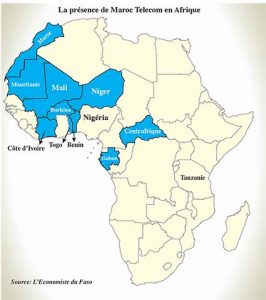 السوق الإفريقية التي دخلتها اتصالات المغرب شهر يناير من العام 2015؛ بعد اقتناءها فروع “موف” من مجموعة اتصالات الإماراتية بكل من الكوت ديفوار والبنين والطوغو والغابون والنيجر وافريقيا الوسطى إلى جانب “بريستيج تيليكوم”، لتصبح بذلك من بين المقاولات الرائدة على مستوى التواجد والانتشار في افريقيا جنوب الصحراء، ليصبح لعملاق الإتصالات المغربي دور رائد في الدفعة القوية التي أعطاها الملك محمد السادس للمقاولات المغربية الكبرى في اتجاه دول الجنوب، وتضع بصمتها في حضيرة الهاتف النقال، قوامها 33 مليون مستعمل ورقم معاملات يتجاوز 15 مليار درهم (نحو 1.375 مليار يورو) ، وتصبح المجموعة واحدة من الشركات الأكثر دينامية في قطاع الاتصالات على مستوى افريقيا الغربية والوسطى.