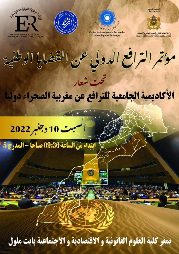 من المنتظر أن تحتضن كلية العلوم القانونية والاقتصادية والاجتماعية بآيت ملول، يوم غد السبت، ندوة فكرية حول موضوع “الأكاديمية الجامعية للترافع عن مغربية الصحراء دوليا”، ضمن فعاليات مؤتمر الترافع الدولي عن القضايا الوطنية، يؤطرها مجموعة من الخبراء والأكاديميين والحقوقيين والإعلاميين.
