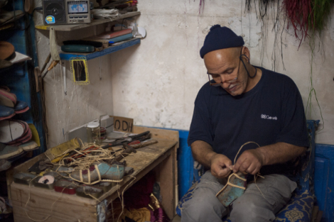 وسط الأحياء العتيقة في مدينة الصويرة، حيث تزكم الأنوف روائح “خشب العرعار” ورذاذ البحر و”قش الرافيا”، يصُفُ “محمد عبد الستار” (62 سنة) النعال المصنوعة من هذا العشب الاستوائي بعناية على واجهة دكانه، ملونة بزخارف متقنة، وقففا مزينة بألوان زاهية، يقبل عليها السُياح الأجانب بشكل واسع، لجمال منظرها، وصحية ملبسها، خاصة لمن يعانون من بعض الأمراض الجلدية.