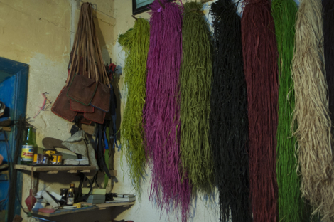 لا تنفلتُ الإبرة من بين أنامله رغم الوخزات الرفيعة التي تُدميها، ينهمك حاسر الرأس، منزويا في ركن قليلة الإضاءة لحياكة “نعال القش”، تُطوقه من كل جانبه خيوط “الرافيا” الصلبة، وقد رتب بعناية أكواما ملونة منها، فيما تلاحق عيناه دون تعب الإبرة التي يغرسها بقوة، متلهفا لإنهاء “خفي الرافيا” قبل مغيب الشمس.