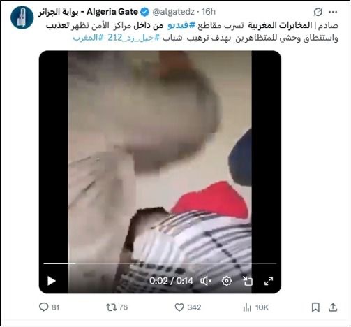 نشرت صفحات وحسابات أجنبية على مواقع التواصل الاجتماعي”صورا ومقاطع مبتورة من شريط تمثيلي قصير منشور سابقا على يوتيوب، وقدمتها بشكل تضليلي ومغرض على أنها أعمال عنف وتعذيب منسوبة لموظفي الأمن ضد المتظاهرين بالمغرب”.