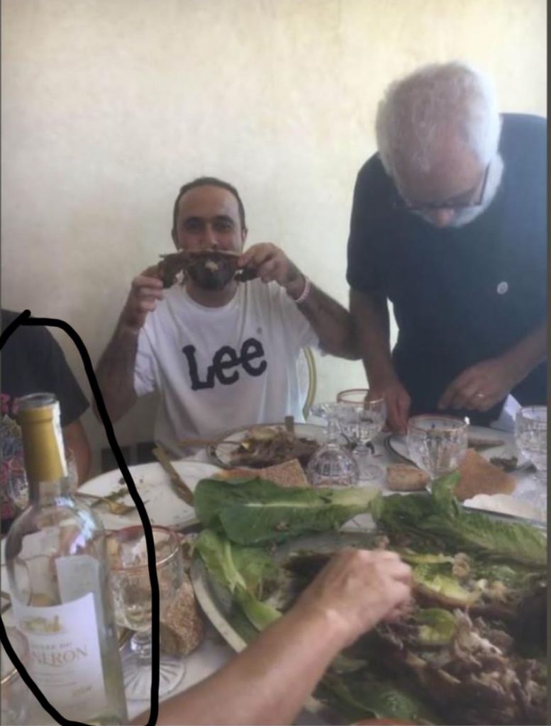 فقد نشر المعطي منجب صورة توثق لسليمان الريسوني وهو يلتهم أجمل ما في لحم الخروف، مما التصق بعظم، على إيقاع نكهة قنينة خمر معتقة من غير تلك المتاحة ولا المتوفرة للطبقات المناضلة.