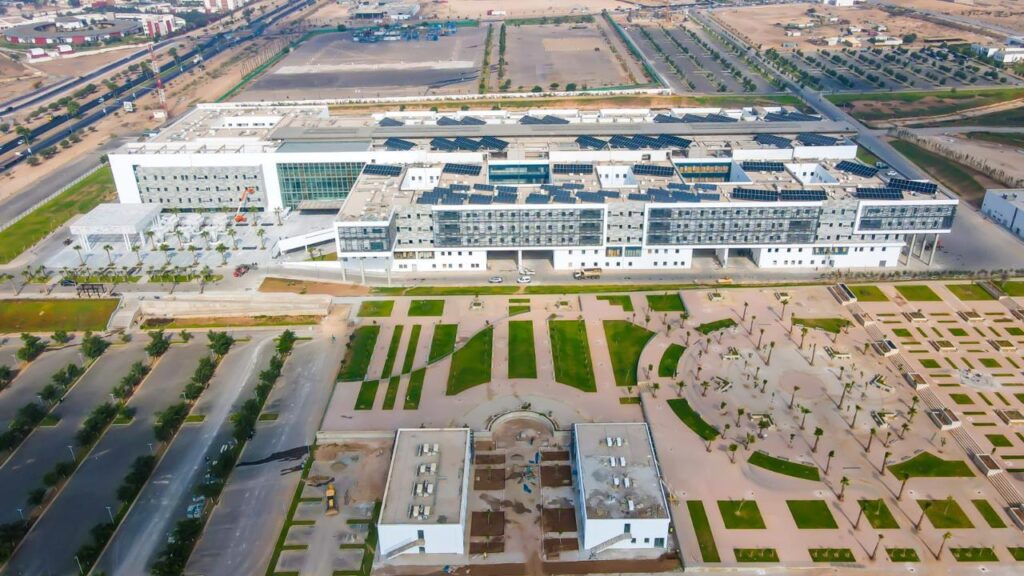 ويشكل المركب الاستشفائي الجامعي الدولي محمد السادس للرباط، الذي أنجزته مؤسسة محمد السادس للعلوم والصحة، نموذجا حقيقيا لعهد جديد من البنيات الاستشفائية الحديثة والذكية، مجسدا بذلك، رؤية جلالة الملك وعنايته السامية.