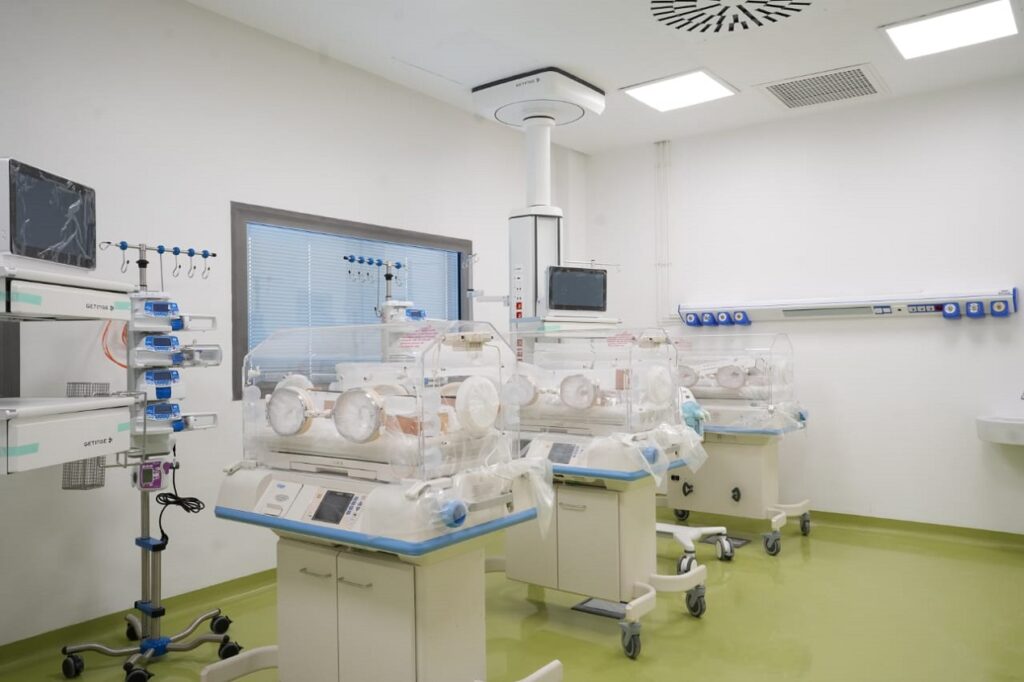 ويحتوي المستشفى، أيضا، على 24 غرفة عمليات حديثة، 19 منها بالمركب الجراحي المندمج الذي يمتد على مساحة إجمالية قدرها 3400 متر مربع، منها غرف هجينة وروبوتية، إلى جانب 143 سريرا مخصصا للعلاجات الحرجة، من بينها 30 حاضنة لإنعاش الأطفال حديثي الولادة.