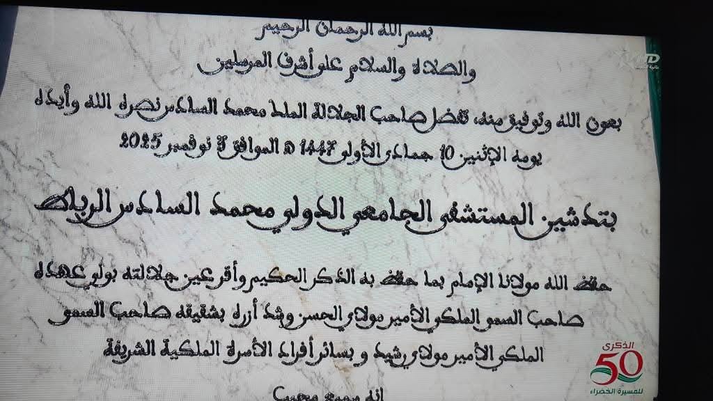 كما أعطى الملك محمد السادس هذا اليوم، تعليماته السامية لافتتاح المركز الاستشفائي الجامعي محمد السادس لأكادير، القطب الطبي للتميز الذي سيمكن من إحداث قفزة نوعية حقيقية في عرض خدمات الرعاية الصحية وتكوين الأطباء على مستوى جهة سوس- ماسة.