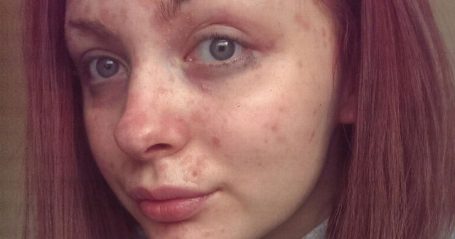 وذكر موقع “Goodfullness” أن الشابة تعاني من الصدفية “Psoriasis” التي تصيب مناطق مختلفة من الجلد في كافة أنحاء الجسم، على شكل بقع حمراء.