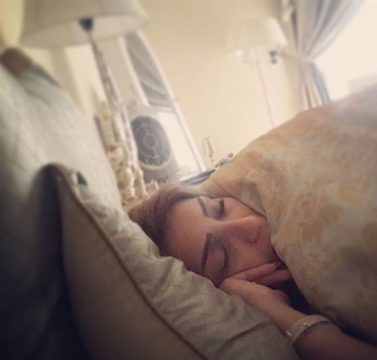 نشر زوج الفنانة المغربية دنيا باطمة محمد الترك على صفحته بإنستجرام، صورة لزوجته وهي نائمة في فراشها.