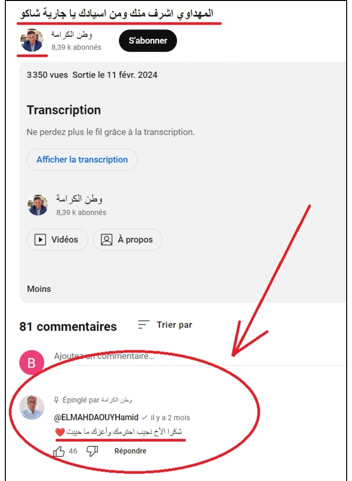 “بوغطاط المغربي” قرر اليوم أن يضع حميد المهداوي أمام امتحان حقيقي، خصوصا وأن صديقه الذي يُعزه ويحترمه ما حيا، كما جاء في تعليق له على فيديو بتاريخ 11 فبراير 2024، خصصه “أخوه” نجيب لمهاجمة بعض المغاربة، دفاعا عن المهداوي… صديقه هذا “رجل القانون”… لم يكتف فقط بالمهاجمة، وإنما وصل به الأمر بعد ذلك إلى حد التهديد بالقتل وقطع رأس اليوتوبر تحفة في فيديو آخر بعد 9 أيام.