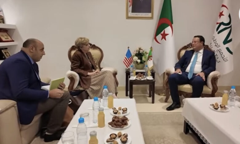 استقبل الأمين العام لحزب التجمع الوطني الديمقراطي الجزائري، منذر بودن، مؤخرا، السفيرة الأمريكية بالجزائر، في لقاء وُصف بأنه يحمل رسائل دبلوماسية مهمة في سياق التحركات الأمريكية المتسارعة بالمنطقة.