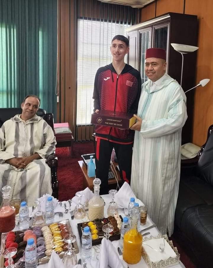 وتداولت مجموعة من صفحات مواقع التواصل الاجتماعي بكثير من السخرية، صورة لاستقبال عامل إقليم الخميسات للتلميذ جواد خشينة، الذي يتابع دراسته بثانوية مولاي رشيد التأهيلية بتيداس، وذلك بمناسبة فوزه بذهبية بطولة العالم المدرسية للعدو الريفي، التي احتضنتها دولة سلوفاكيا نهاية الشهر الماضي، خلال مشاركته ضمن بعثة المنتخب الوطني المدرسي، وهي الصورة التي تظهر تسلم التلميذ المحتفى به هدية تجهل طبيعتها إلا أنها توجد وسط علبة شاي صيني، الأمر الذي كان كافيا لإثارة انتباه رواد شبكات التواصل الإجتماعي وإطلاق العنان لتعليقاتهم وانتقاداتهم لهزالة الهدية التي لا تتناسب مع حجم المناسبة وطبيعة المسؤول الذي قام بتسليمها.