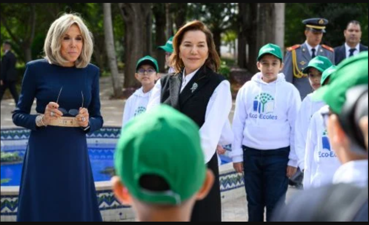 كما تقدم للسلام على الأميرة للا حسناء وضيفتها بريجيت ماكرون، تلاميذ بالمدارس البيئية، قبل القيام بزيارة لحديقة التجارب النباتية.