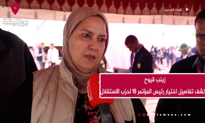 كشفت زينب قيوح منسقة حزب الاستقلال بجهة درعة تافيلالت، عن تفاصيل اختيار رئيس المؤتمر الثامن عشر لحزب الاستقلال، في الساعات الأولى من صباح يومه السبت.