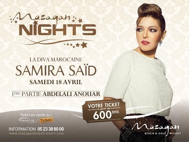 أعلن بيان صادر عن إدارة منتجع مازاغان إحياء ليلة متميزة مع الديفا سميرة بنسعيد يوم 18 أبريل القادم.