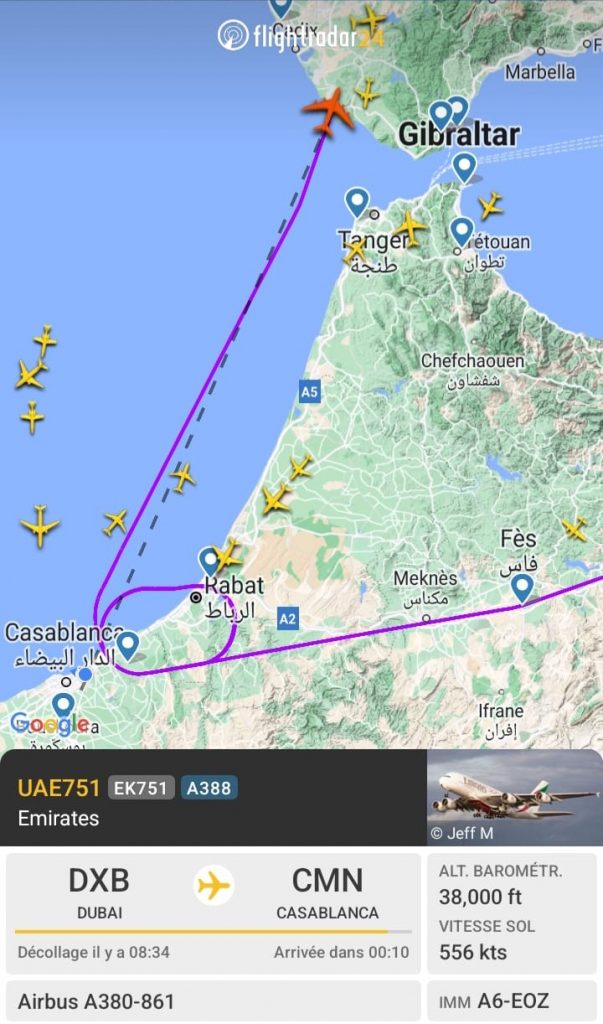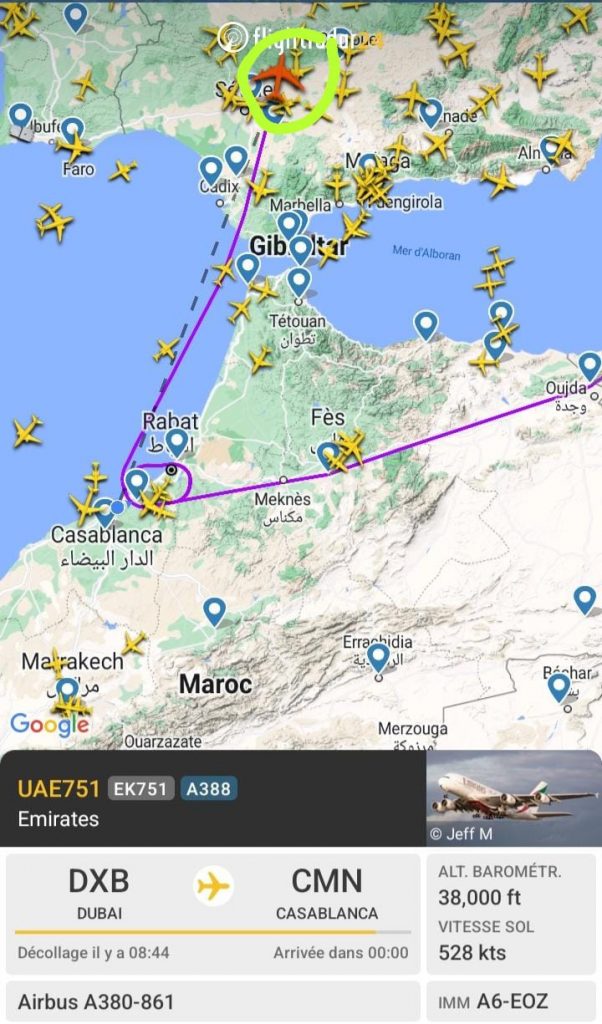 وبعد فشل محاولات عديدة للهبوط بمطار البيضاء اضطرت الطائرة للتوجه إلى الأجواء الإسبانية التي تمكنت من الدخول إليها مساء اليوم.
