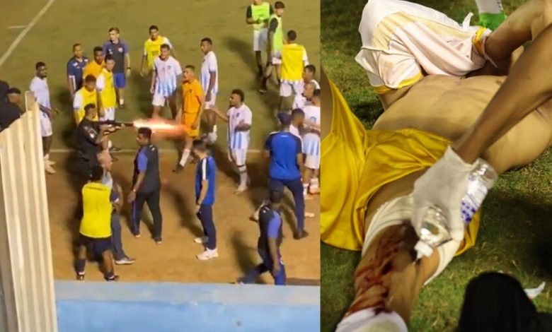 أطلق شرطي النار على ساق أحد اللاعبين، في مباراة جمعت نادي غريميو أنابوليس وسينترو أويستي بدوري الدرجة الثانية البرازيلي بكرة القدم، ضمن الجولة الـ12، أمس الأربعاء.