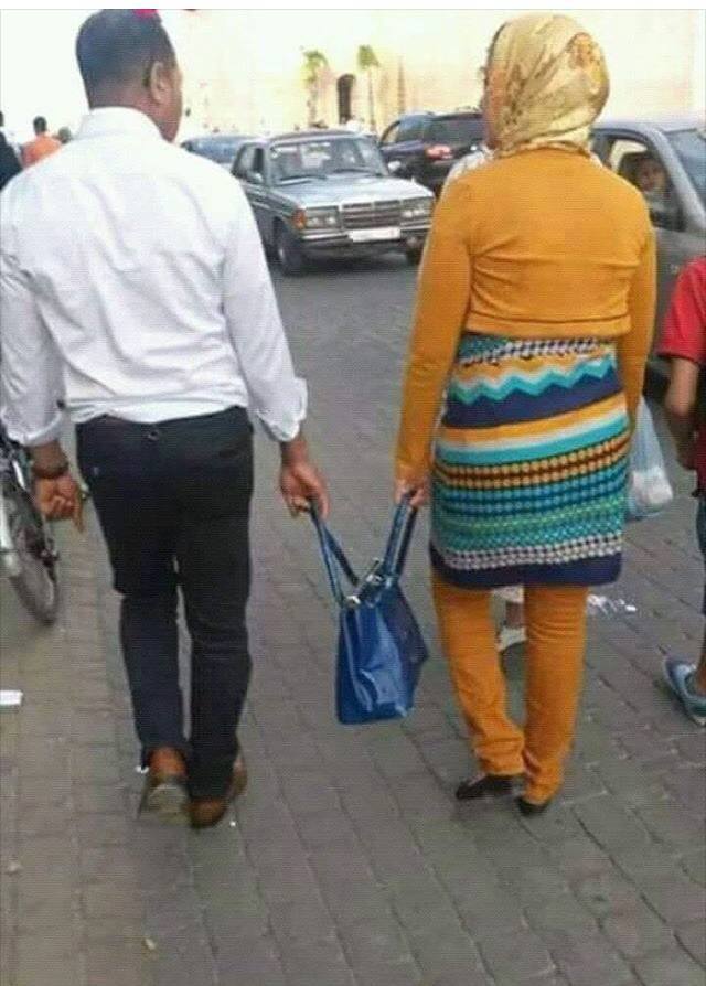 تناقل رواد الموقع الأزرق، صورة لشخصين يمشيان بأحد الشوارع الرئيسية بمدينة الرباط، وهما يتقاسمان حمل حقيبة نسائية.