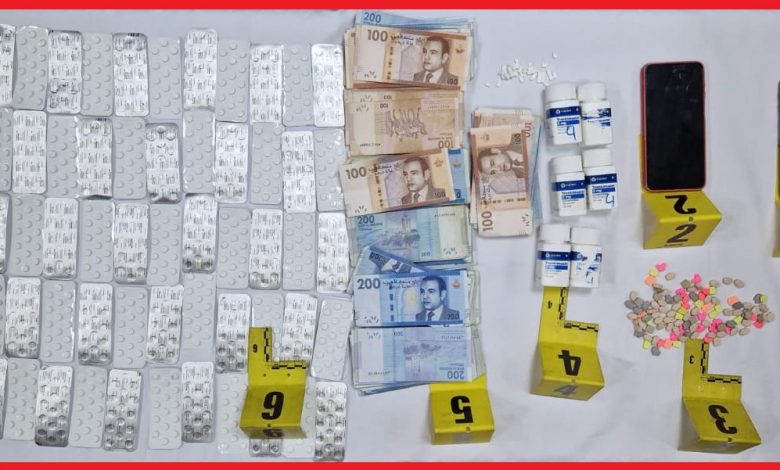 وحسب ذات المصدر فقد جرى توقيف المشتبه فيه متلبسا بحيازة وترويج المخدرات، حيث أسفرت عملية الضبط والتفتيش عن العثور بحوزته على 1740 قرص مخدر من أنواع مختلفة، علاوة على مبلغ مالي يشتبه في كونه من متحصلات هذا النشاط الإجرامي.