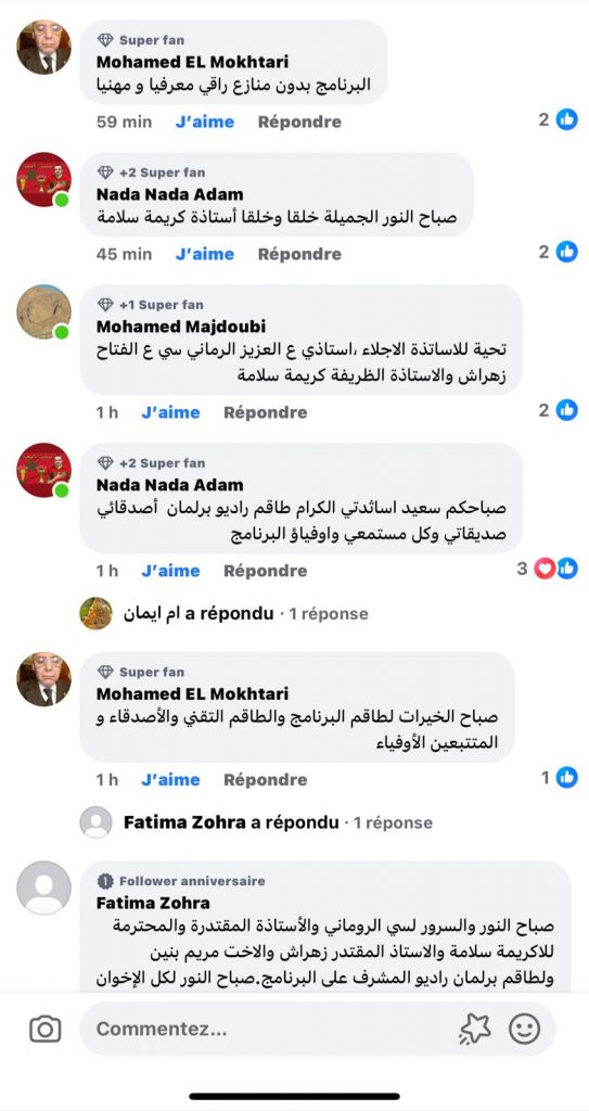 وأشادت عائلة “برنامج “نخرجو ليها ديريكت”، بما تقدمه إذاعة برلمان راديو من برامج هادفة، مشيرين إلى أن الإذاعة تقدم برامج رائعة وفي مستوى التطلعات.