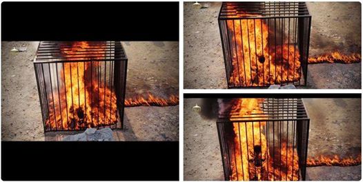 ولم يتسن لرويترز على الفور التحقق من صحة الصور الخمس التي تظهر رجلا يحترق في قفص أسود.