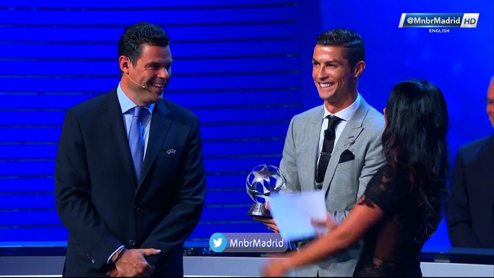 وتسلم رونالدو الجائزة خلال الحفل المقام حاليا في موناكو لإجراء قرعة دور المجموعات للموسم الجديد من البطولة، وتسليم جوائز أفضل اللاعبين في القارة العجوز.