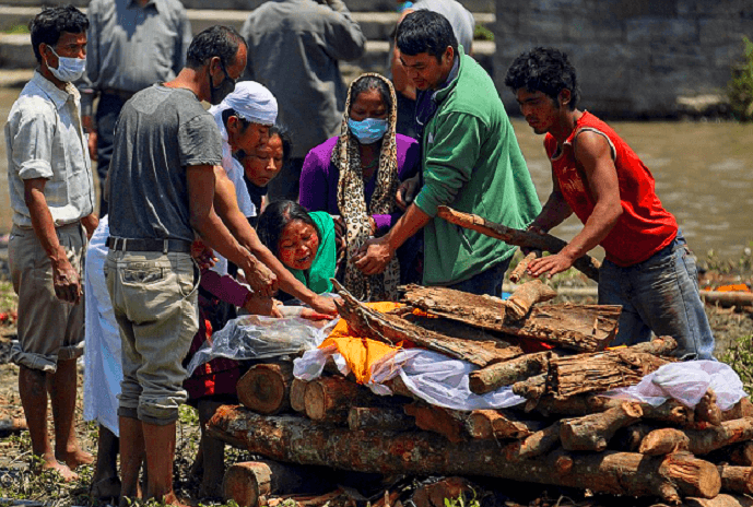 وما استقطب كاميرات الصحافة العالمية، كان طريقة تعامل شعب النيبال مع جثامين القاضين.