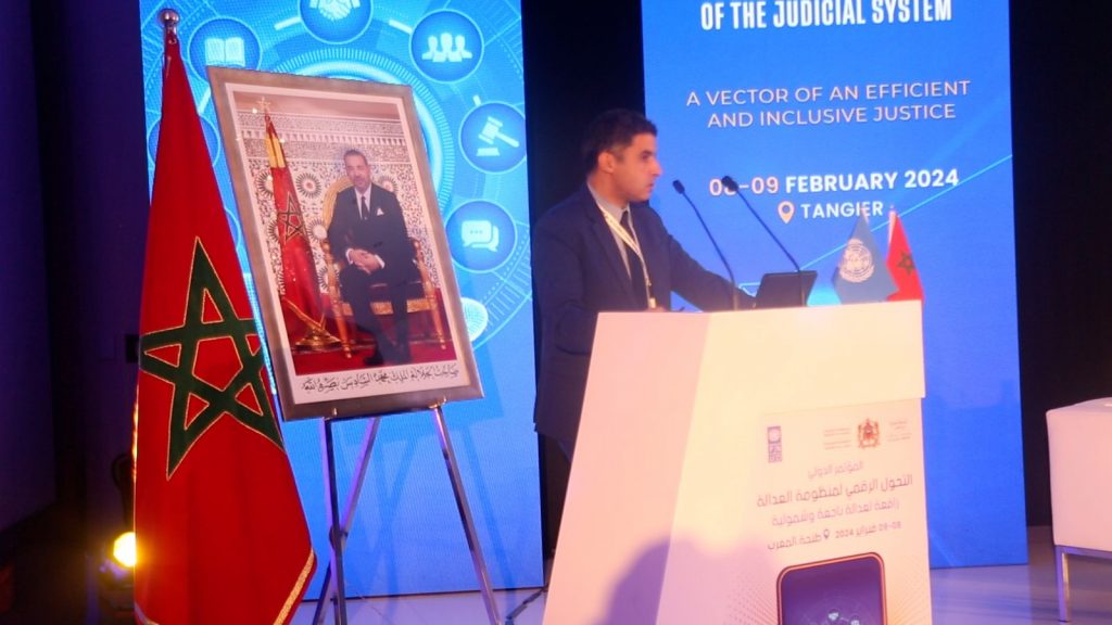 تم يومه الجمعة، تنظيم جلسة، ضمن فعاليات المؤتمر الدولي حول التحول الرقمي لمنظومة العدالة: رافعة لعدالة فعالة وشمولية، بمدينة طنجة، الذي تنظمه وزارة العدل بالتعاون مع برنامج الأمم المتحدة الإنمائي (PNUD).