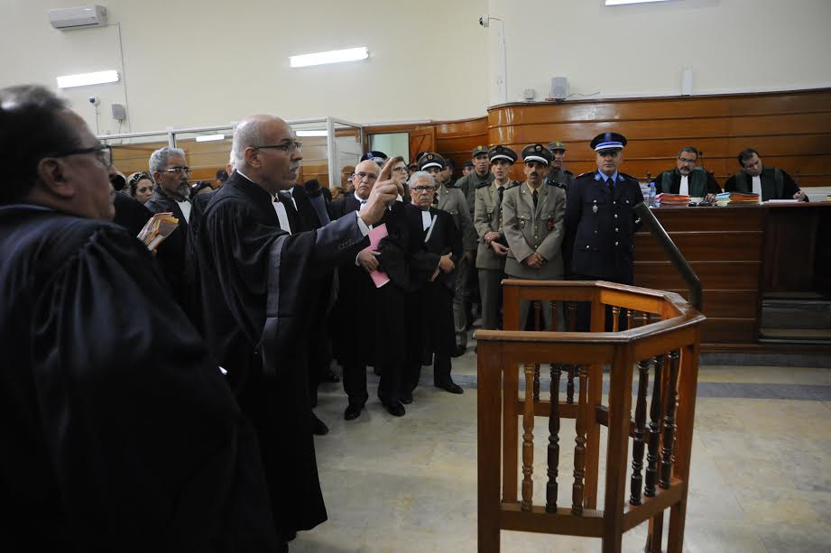 من جهته رفض المحامي محمد مسعودي دفاع المتهمين، أن تنتصب هيئة دفاع جديدة عن ذوي الحقوق ، تنضاف إلى هيئة الدفاع التي سبق لها أن ترافعت في الملف أمام المحكمة العسكرية. ردا على ذلك قدم عبد الكبير طبيح أحد  محامي دفاع ذوي الحقوق دفوعات بالحجج والقرائن لما يمثله المطالب بالحق المدني في ضمان محاكمة عادلة لكل الأطراف ضحايا ومتهمين.