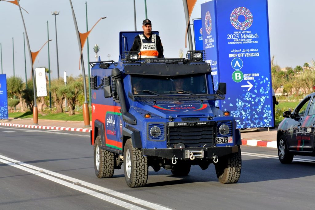 مواكبة للمعايير المعتمدة على الصعيد الدولي في تأمين التظاهرات الكبرى، اعتمدت أجهزة الأمن المغربية لتأمين القرية التي تحتضن الاجتماعات السنوية لصندوق النقد الدولي والبنك الدولي بمنطقة “باب إغلي” بمراكش مستويات عدة من المراقبة الأمنية.