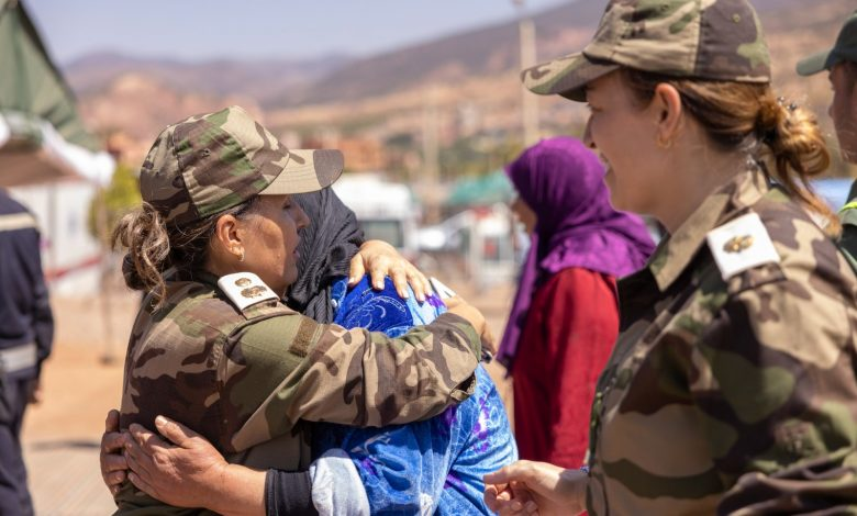 ومن جهة أخرى، تم رصد مشاهد فياضة بالأحاسيس والمشاعر الصادقة، التي عبرت عنها مواطنات متضررات وجنديات القوات المسلحة الملكية، تمثلت في لحظات عناق ودموع تحمل خلفها الشعور بالحماية والوقوف مع أبناء الوطن ودعمهم بكل ما يلزم.