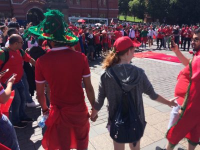 أطلق مغاربة بموسكو، بالساحة الحمراء وسط العاصمة الروسية موسكو، يوم أول أمس 20 الأربعاء يونيو، مبادرة “khawa people”، والتي تعد أكبر تجمع من نوعه، جمعت العديد من مشجعي كرة القدم من خمسين جنسية مختلفة.