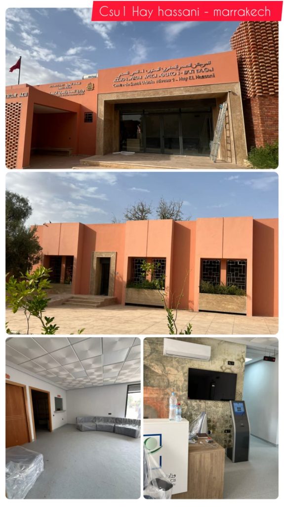 وقد شملت هذه الجهود إعادة بناء 27 مركزًا صحيًا في جهة مراكش-آسفي، حيث توزعت على أقاليم شيشاوة، مراكش، والحوز. ففي إقليم شيشاوة، تم تأهيل عدة مراكز صحية، منها المركز الصحي القروي من الدرجة الثانية أسيف المال، والمركز الصحي القروي من الدرجة الثانية للا عزيزة، والمركز الصحي القروي من الدرجة الأولى سيدي غانم، والمستوصف القروي سيدي محمد دليل، والمركز الصحي القروي من الدرجة الثانية تمليلت، والمستوصف القروي المعيصرة، والمركز الصحي القروي من الدرجة الأولى حوكات، والمركز الصحي القروي من الدرجة الأولى ولاد بور، والمستوصف القروي لخنيك، والمستوصف القروي مولاي إبراهيم الروحة، والمستوصف القروي لمزارة، والمركز الصحي القروي من الدرجة الأولى سيدي بوزيد، والمركز الصحي القروي من الدرجة الثانية تيمزكاديوين، والمستوصف القروي الزاوية النحلية، والمركز الصحي الحضري من الدرجة الأولى زاوية بلمقدم، والمستوصف القروي تازيدرة، والمستوصف القروي جرف، والمستوصف القروي لغساسلة.