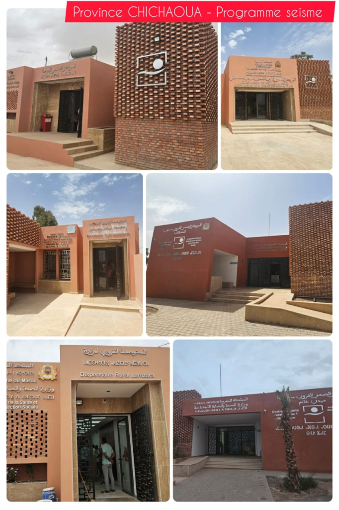 في إطار التوجيهات الملكية السامية والجهود الوطنية المبذولة للتصدي للآثار المدمرة الناتجة عن الزلزال الذي هز المملكة المغربية في 8 شتنبر 2023، قامت وزارة الصحة والحماية الاجتماعية بإعادة تأهيل وترميم 42 مركزا صحيا في المناطق المتضررة، والتي تولت الوكالة الوطنية للتجهيزات العامة إعادة بنائها.