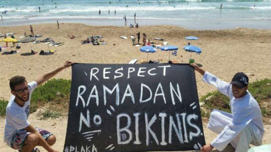 لافتة “لا بيكيني في رمضان” تجوب الشواطئ