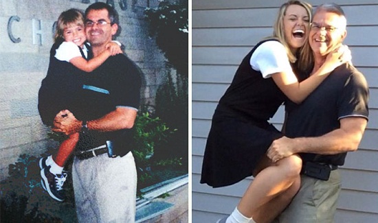 أب وابنته يلتقطان صورة في أول يوم لها بالمدرسة وآخر يوم بالجامعة