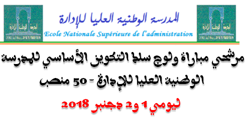 المدرسة الوطنية العليا للإدارة: مرشحو مباراة ولوج سلك التكوين الأساسي للمدرسة الوطنية العليا للإدارة – “50 منصبا” ليومي 1 و2 دجنبر 2018