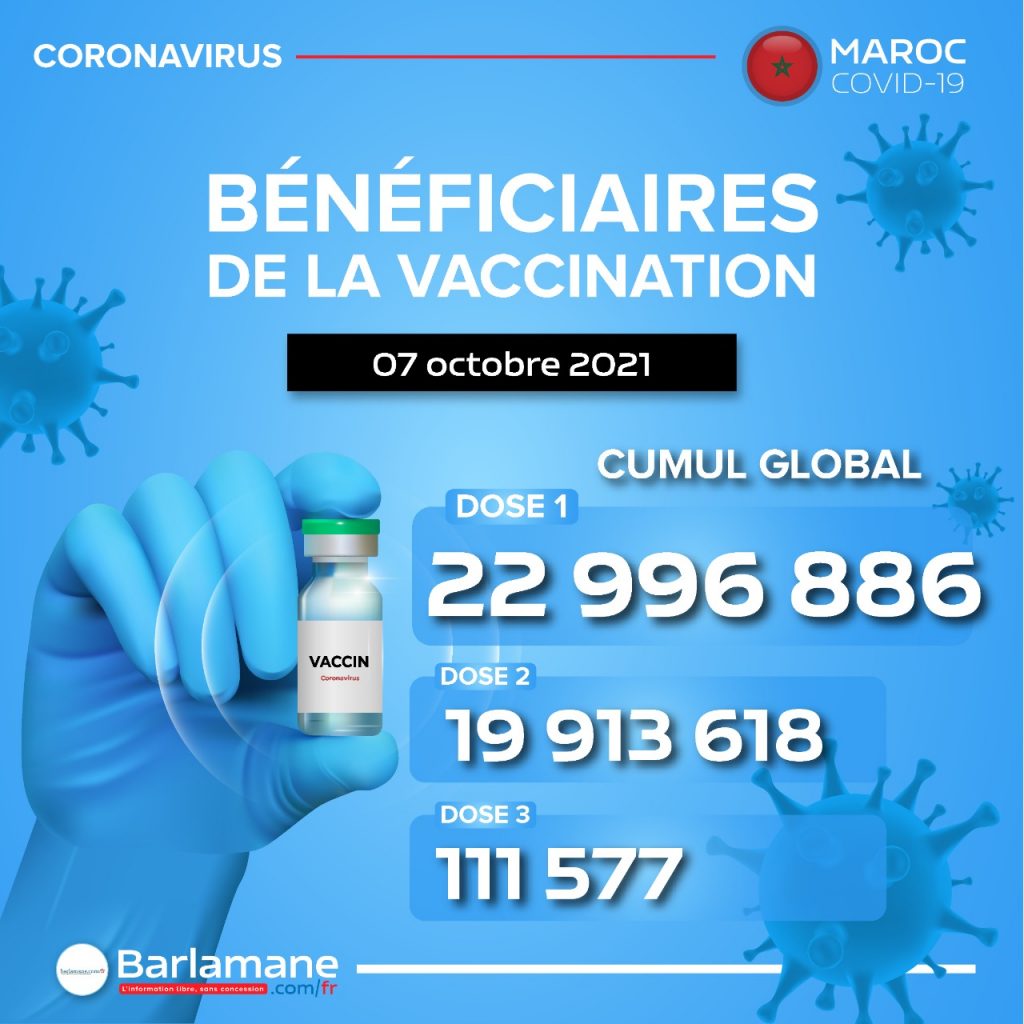 Le nombre de primo-vaccinés a atteint 22.996.886, alors que celui des personnes ayant reçu la 2-ème dose s’élève désormais à 19.913.618, a précisé le ministère dans son bulletin quotidien sur la situation épidémiologique Covid-19.