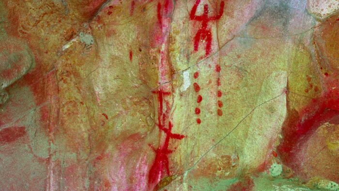 L’art rupestre se distingue par sa diversité et son ampleur : «Nous avons documenté vingt-deux abris ornés, dont dix-sept peints et cinq gravés, dans une région où l’on n’en connaissait jusqu’alors qu’un seul», souligne M. Benattia. Les motifs représentés — figures anthropomorphes, pointillés, compositions géométriques — évoquent un langage symbolique partagé avec l’Ibérie, le Sahara central et le pourtour atlantique.