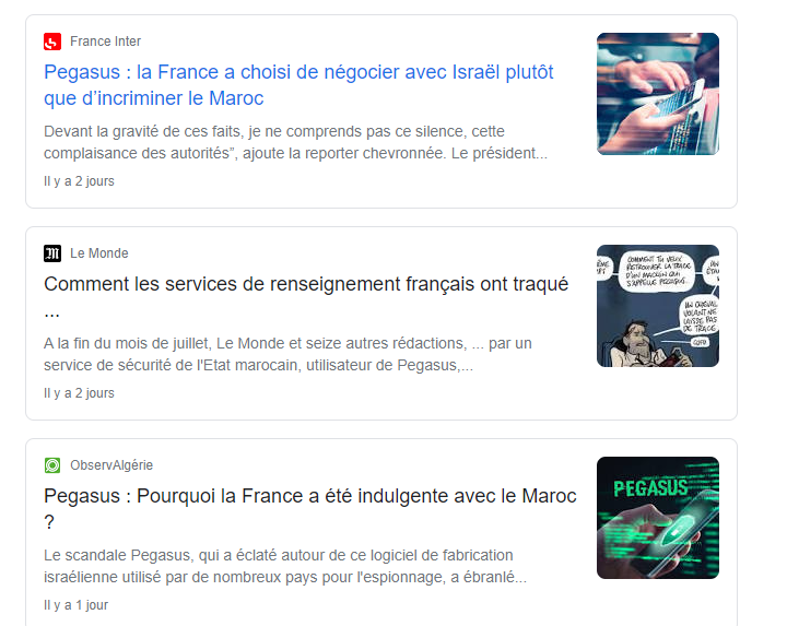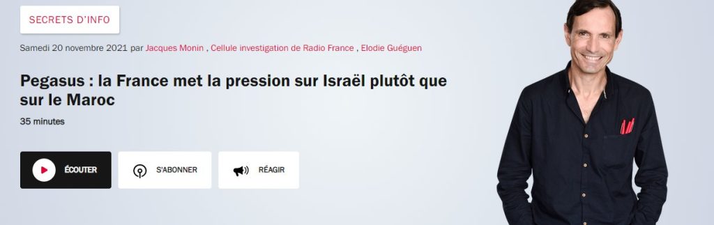 Le Maroc peut-il poursuivre pour diffamation en France ? Le tribunal de Paris examinera le 6 décembre la recevabilité des poursuites engagées par l’État marocain contre des ONG et médias français derrière l’affaire Pegasus. En attendant, une nouvelle enquête, une autre, cette fois de Radio France. Les titres sont d’une incroyable désinvolture. «Pegasus : la France a choisi de négocier avec Israël plutôt que d’incriminer le Maroc (France Inter, 19/11)» ; «Pegasus, et après ? Comment la France a mis la pression sur Israël plutôt que sur le Maroc (France Info, 20/11)». Les lancements des articles (repris par des médias à la solde du régime algérien) : «En dépit des révélations du consortium d’investigation créé par Forbidden Stories sur l’affaire Pegasus, la France n’a pour l’instant pas souhaité incriminer le Maroc, officiellement par manque de preuves. Elle a en revanche mis la pression sur Israël.»