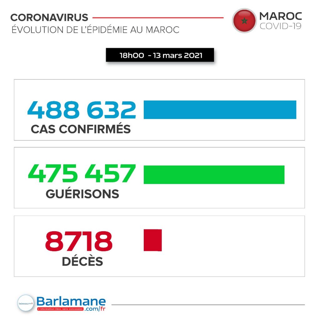 Ce nouveau bilan porte à 488 632 le nombre total des contaminations depuis le premier cas signalé en mars de l’année dernière, tandis que le nombre des personnes rétablies est passé à 475 457, soit un taux de guérison de 97,3%, précise le ministère.