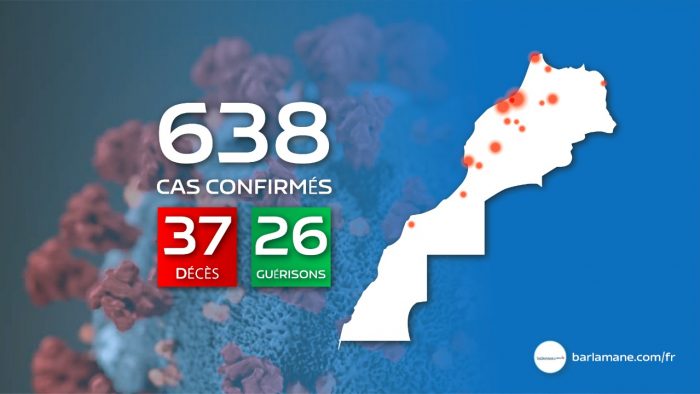 Le ministère indique que le nombre total des cas d’infection au Covid-19 est de 638. Ces cas ont été recensés dans les régions de Casa-Settat (179), Marrakech Safi (115), Rabat Salé Kenitra (111), Fès-Meknes (110), Tanger Tetouan Al Hoceima (44), l’Oriental ( 26), Beni Mellal-Khénifra (20), Souss-Massa (17), Daraa-tafilalet ( 13), Laâyoune-Sakia El Hamra (2) et Guelmim Oued Noun (1).