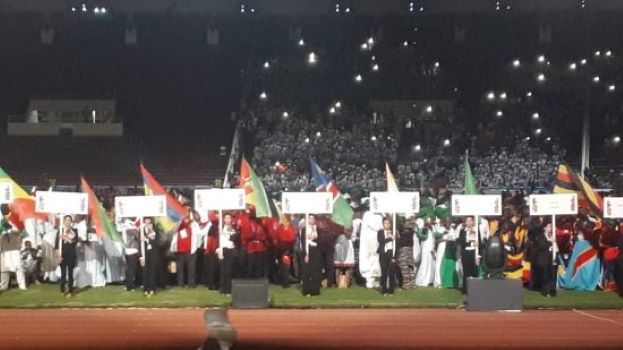 La cérémonie d’ouverture était un spectacle grandiose, qui n’a pas manqué d’impressionner l’assemblée par son organisation, sa technique et sa créativité. Les pays participants ont défilé, délégations et officiels, paradant devant un public de toutes nationalités, en acclamation devant les athlètes. L’excitation et la réactivité du public était une véritable démonstration de paix, de fraternité, et de solidarité alliant les pays africains.