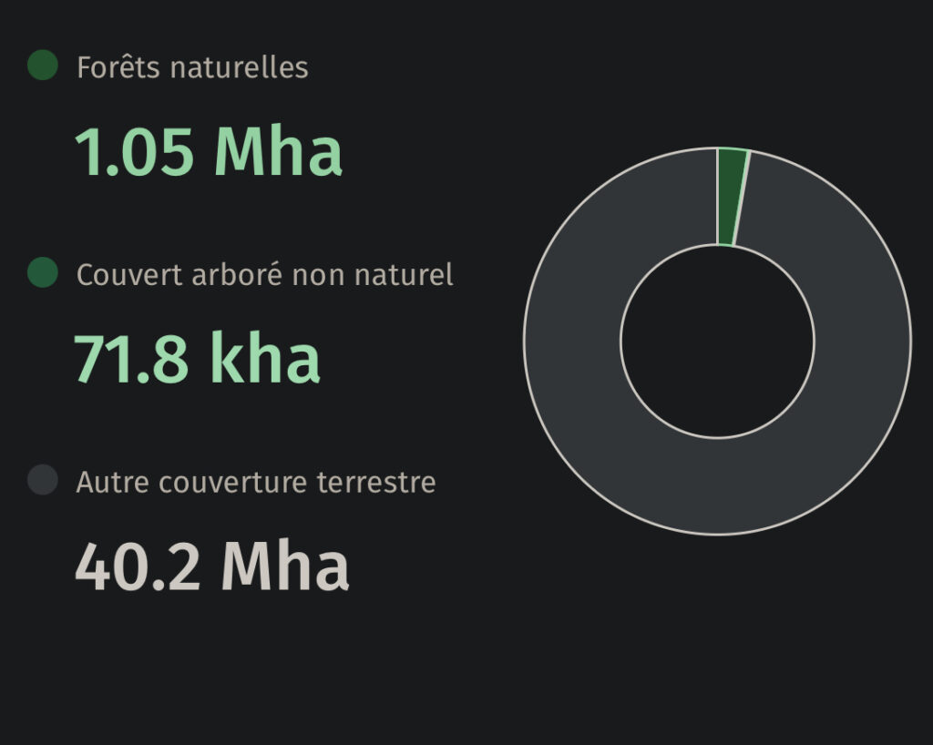 Le rapport précise encore qu’«entre 2021 et 2024, 86 % de la perte de couvert arboré s’est produite dans les forêts naturelles, soit 22 700 hectares, correspondant à 3,69 millions de tonnes d’émissions équivalent CO₂.» Pour l’année 2024 seule, «la perte totale s’élève à 2 370 hectares, dont 1 970 hectares de forêt naturelle et 401 hectares de couvert non naturel.»