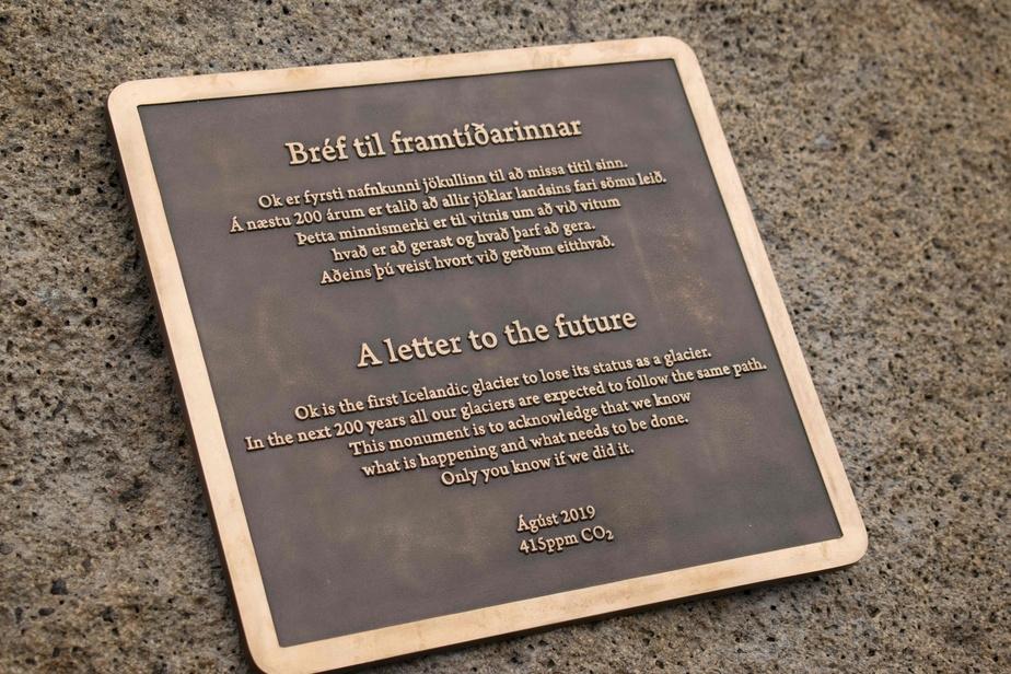 Mmes Katrin Jakobsdottir, Premier ministre islandaise, Mary Robinson, ancienne commissaire des Nations unies aux droits de l’Homme des scientifiques, ainsi que des Islandais issus des quatre coins du pays se sont donné rendez-vous à l’Okjökull, premier glacier de l’île volcanique disparu sous l’effet du réchauffement climatique, où une « lettre pour l’avenir » a été implantée.
