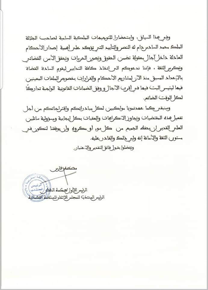 Mustapha Fares, Premier président de la Cour de cassation et président délégué du Conseil supérieur du pouvoir judiciaire (CSPJ), a envoyé une lettre, le 14 avril dernier, aux Premiers présidents des Cours d’appel pour demander aux juges de préparer, dès maintenant, des jugements anticipés.