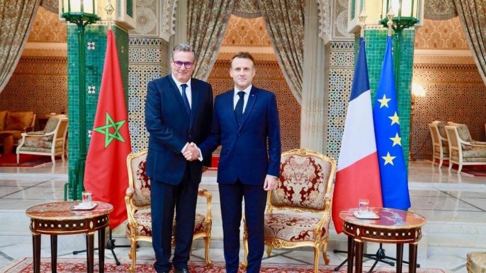 Le président français Emmanuel Macron, a reçu, mardi 29 octobre au palais des Hôtes Royaux à Rabat, le chef du gouvernement, M. Aziz Akhannouch, et les présidents des deux chambres du Parlement, Rachid Talbi Alami et Mohamed Ould Errachid.